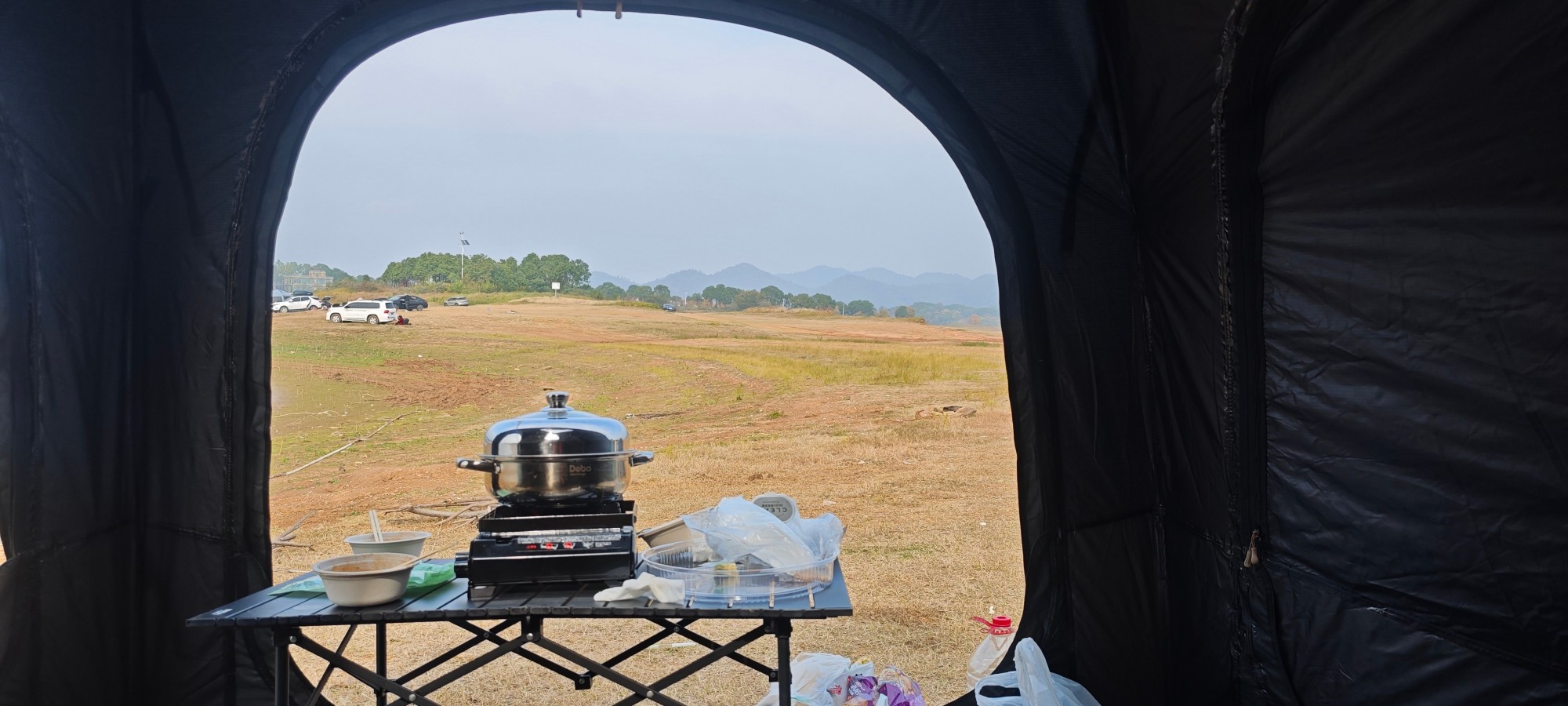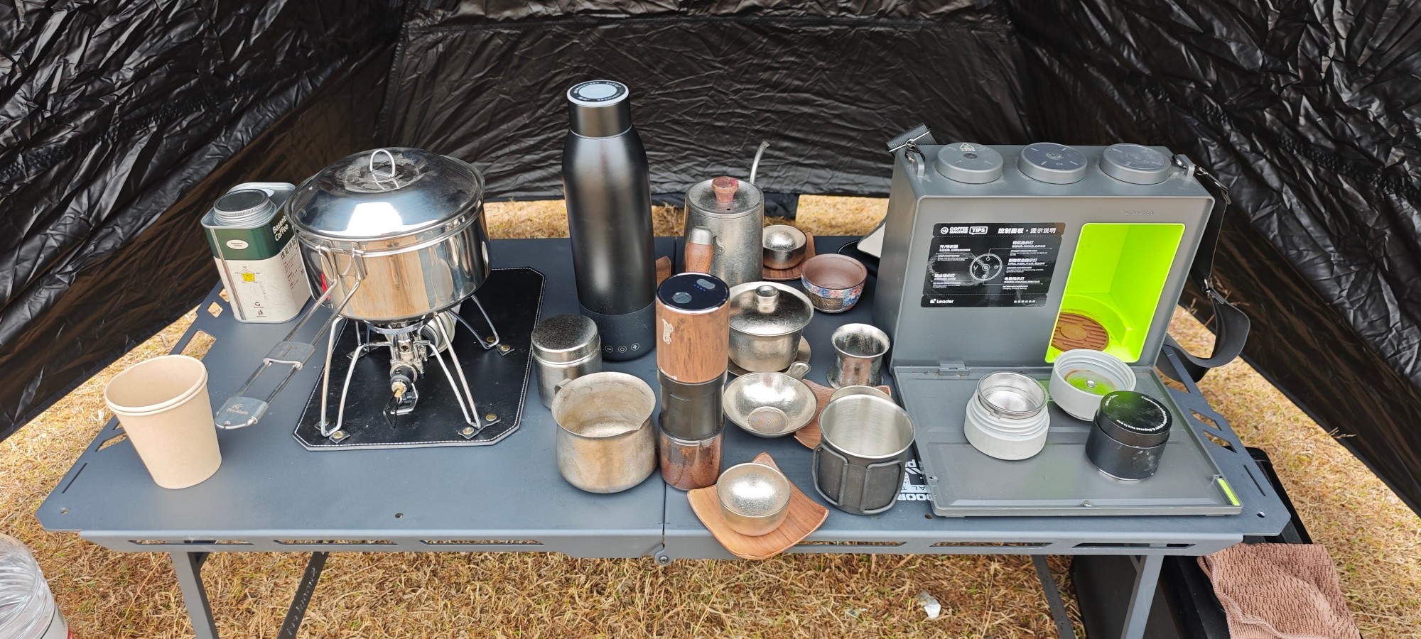 咖啡和茶不能少。忘带水壶了,小水壶一次烧水太少,幸好我哥他们带的有锅。