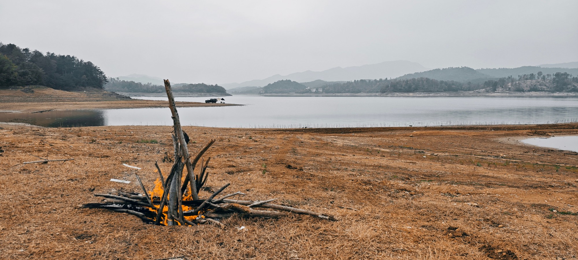 院基寺水库四周有很多地方,这里开阔地面平整,是露营好地方。